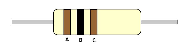 3 juostų rezistorių spalvų kodams pirmosios dvi juostos visada žymi pirmuosius du atsparumo vertės skaitmenis, o trečioji juosta žymi daugiklį.